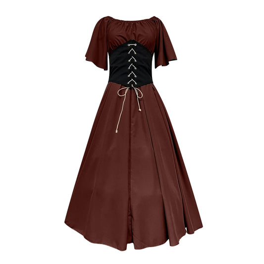 Womens Renaissance Faire Dresses Medieval Irish Traditional plus Size Dresses Ruffle over Dress Corset Retro Cosplay Gown